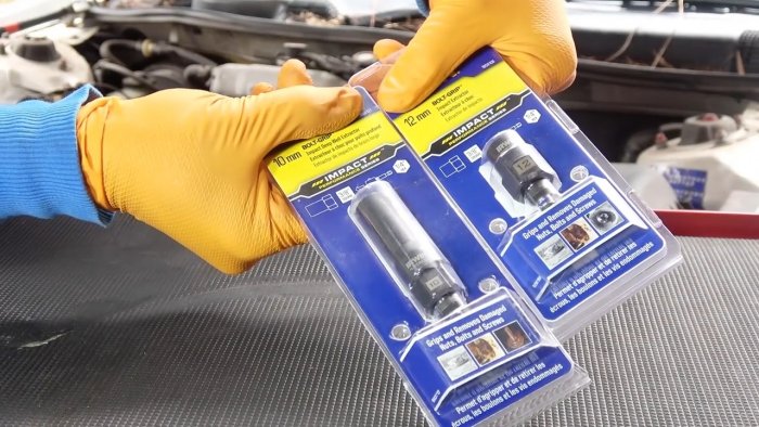 1. Специальные головки-экстракторы. Внутренние части этих головок имеют спирально закрученные пазы, а само отверстие конусной формы. Для того, чтобы открутить болт при помощи такого экс трактора, нужно забить торцевой ключ на головку болта и прокрутить! Конусность позволяет зажимать головку болта, а спиральные пазы подхватывают грани и откручивают болт. Затем сам болт придется выбить из ключа.